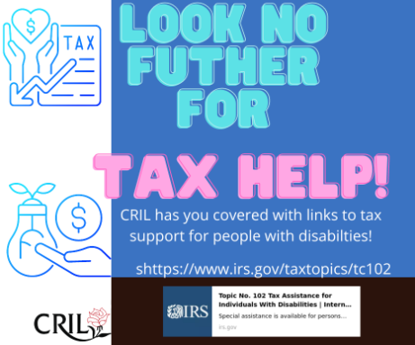 We at CRIL want to support your accessibility needs through all aspects of life including taxes. Check out this link for resources directly from the IRS about tax assistance for people with disabilities